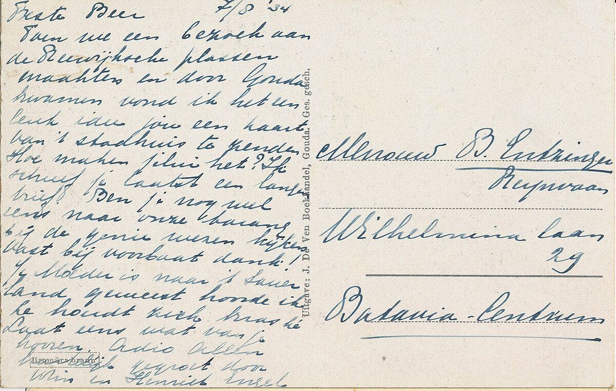 Oma Engel- De Reede verzamelde honderden ansichtkaarten in vele albums, die reizen en interesses toonden van haar en haar familie. Ik heb ook de achterzijden met verhalen, post of toelichtingen of commentaar opgenomen.